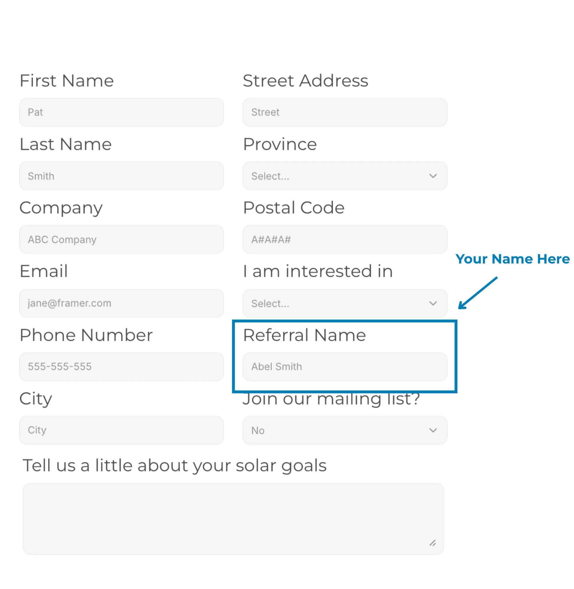 When your referral fills out the Get A Quote form, have them enter your name in the Referral Name field.